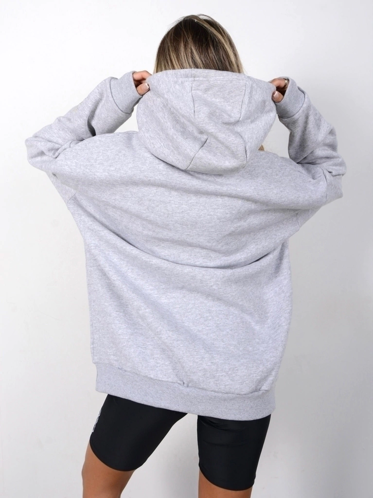 Buzo con friza oversize con bolsillo canguro y capucha. Con bordado en el lateral del puño, talle único.